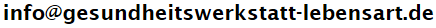| Vielen Dank, dass Sie meine Homepage www.gesundheitswerkstatt-lebensart.de angeklickt haben. |